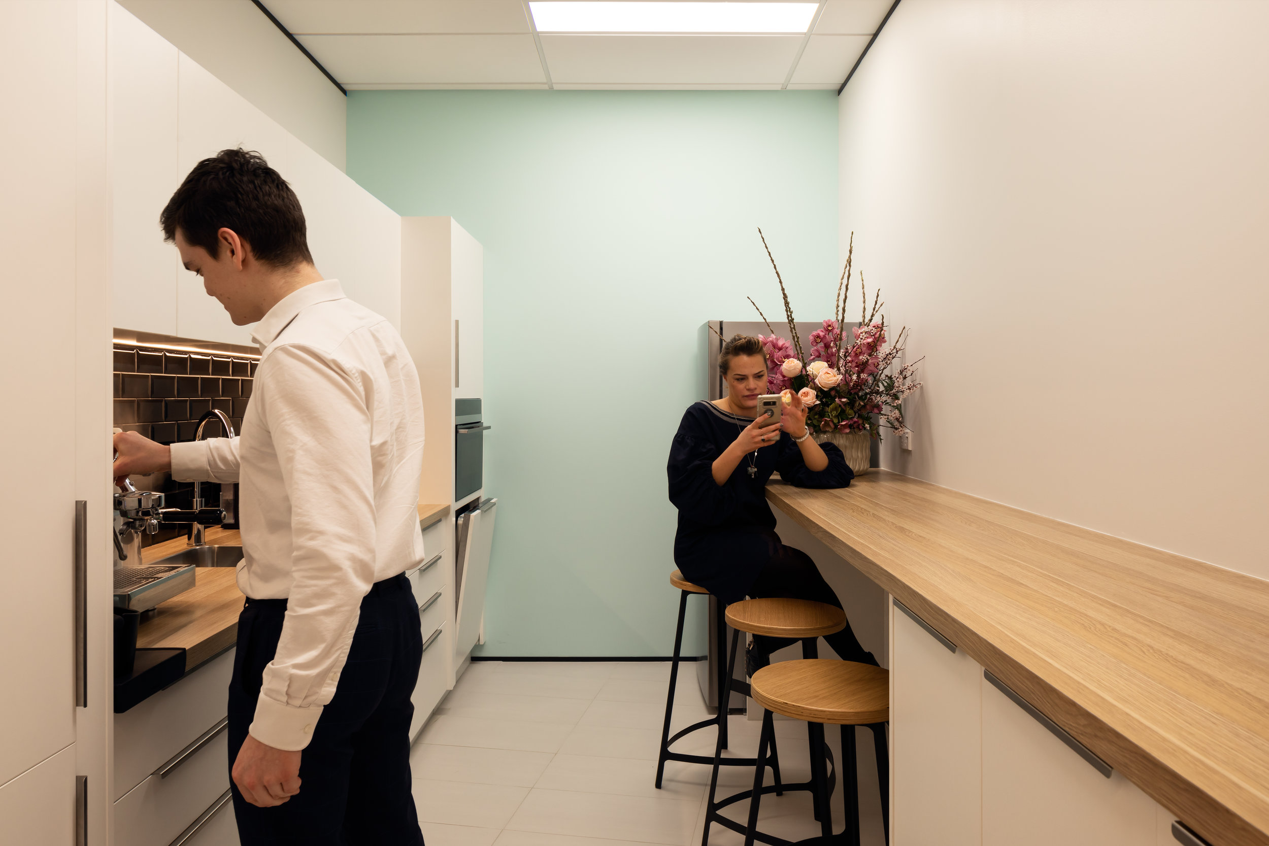 Works included the construction of new meeting and collaborative spaces, open-plan workspace, kitchen and breakout area. Spaces were divided via large bespoke glazed sliding doors to allow for flexible and functional use of the spaces whilst retaining openness and natural light throughout the tenancy along with seamless integration with the fully glazed façade of the building.